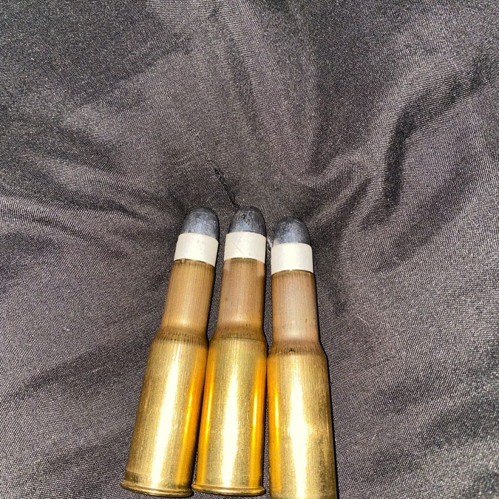 Set of three .577-450 Martini-Henry dummy rounds / snap-caps / fake bullets. This was the cartridge used by the British empire from the 1870’s until being replaced by the .303 British in 1888. It saw action in multiple conflicts, including the Anglo-Afghan Wars, the Zulu War, & the Boer Wars.